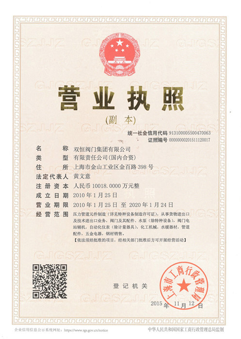 上海雙恒閥門集團(tuán)營(yíng)業(yè)執(zhí)照